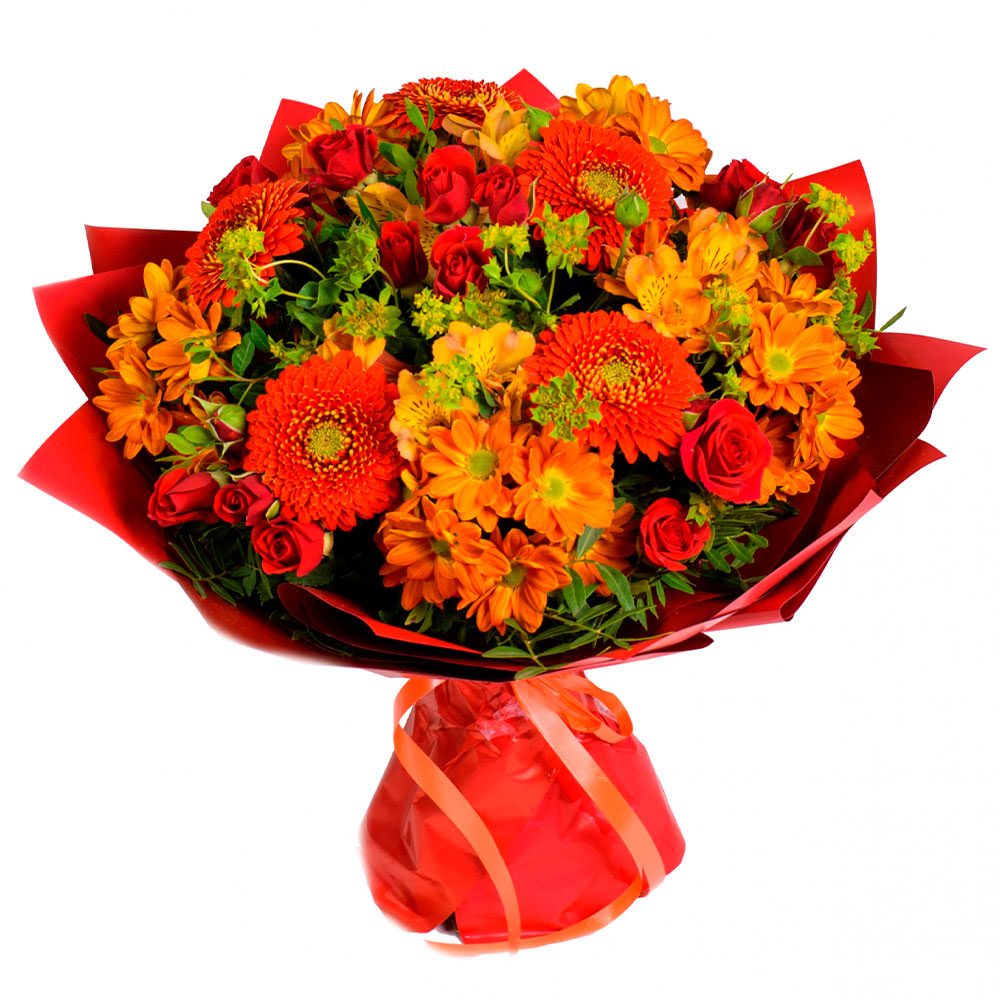 На фото представлен образец. Объем букета зависит от выбранного вами размера. Точное количество цветов и цветовую гамму вы можете уточнить у менеджера по телефону.