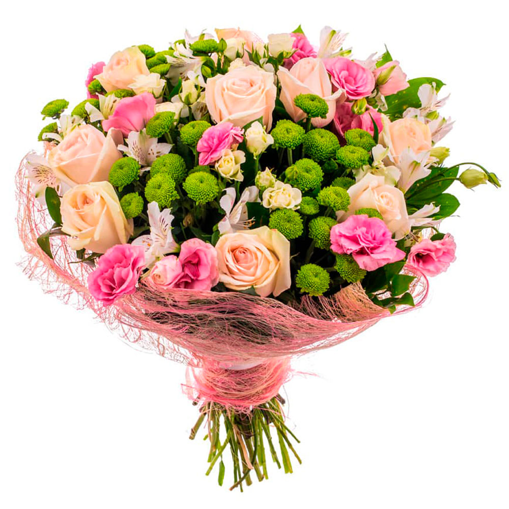 На фото представлен образец. Объем букета зависит от выбранного вами размера. Точное количество цветов и цветовую гамму вы можете уточнить у менеджера по телефону.