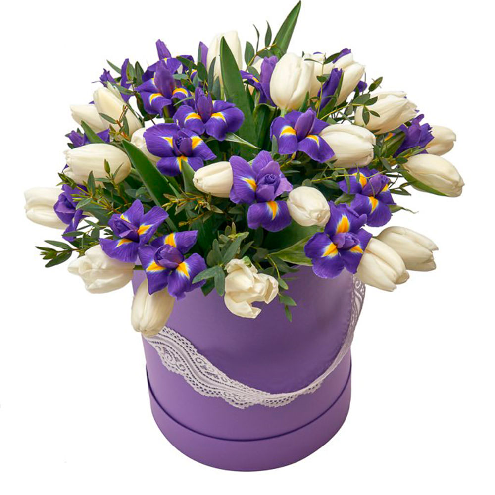 На фото представлен образец. Объем коробки зависит от выбранного вами размера. Точное количество цветов и цветовую гамму вы можете уточнить у менеджера по телефону.